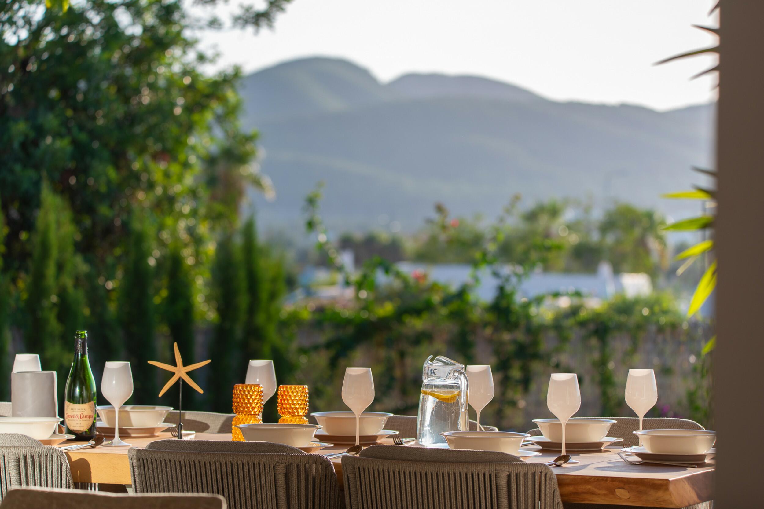La casa vanta un esterno incantevole, curato nei minimi dettagli e completamente recintato. Il giardino, irrigato automaticamente, è ricco di vegetazione, tra cui prati, alcuni alberi da frutto e bellissime bouganville che aggiungono un tocco di colore. Dispone inoltre di una piscina di 50 m2 e di una bella zona chill-out coperta in legno di Iroko con cucina esterna e barbecue. A pochi metri dalla casa si trovano una toilette e una lavanderia.