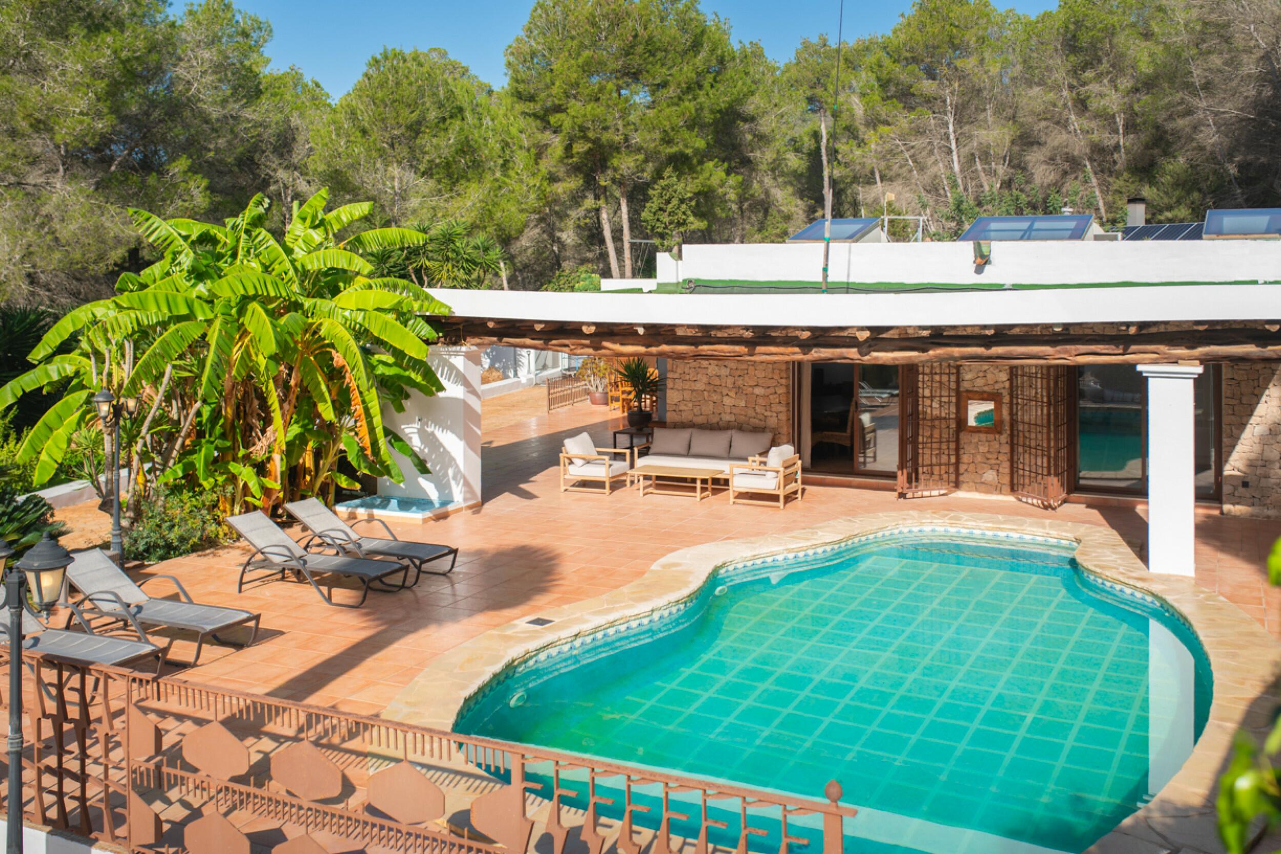 Con un orientamento privilegiato a sud-ovest, questa proprietà gode di abbondante luce naturale per gran parte della giornata e permette di godere di magnifici tramonti, offrendo un'atmosfera calda e accogliente sia negli spazi interni che in quelli esterni. La villa si trova in cima a una collina, circondata da un bosco, che garantisce privacy e tranquillità, oltre a una vista spettacolare sull'ambiente naturale e sul mare. La sua posizione è imbattibile: a pochi minuti dall'incantevole villaggio di San José, con i suoi ristoranti, supermercati e servizi essenziali; a 10 minuti di auto dall'aeroporto e a soli 15 minuti dalla vivace città di Ibiza. Si trova inoltre vicino alle bellissime spiagge della costa occidentale di Cala Vadella, Cala Tarida e Cala Conta, nonché alle famose spiagge meridionali di Es Cavallet e Salinas, tutte facilmente raggiungibili. La vista senza ostacoli sul mare, sulle colline e sulla foresta circostante offre uno scenario spettacolare, perfetto per godere di un'atmosfera di calma e distacco in una delle zone più ambite dell'isola.