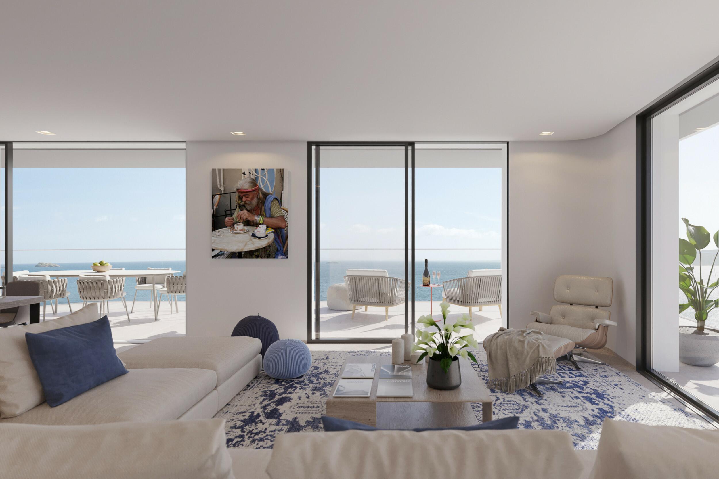 La proprietà si trova a Marina Botafoch, conosciuta anche come "il triangolo d'oro" per i suoi ristoranti e nightclub di lusso famosi come Lío, Pachá e il Casinò di Ibiza. La sua incredibile posizione — a soli 350 m dalla spiaggia di Talamanca, 10 minuti dal centro di Ibiza e da Dalt Vila, e 15 minuti dall'aeroporto — è uno dei luoghi più esclusivi dell'isola. L'appartamento offre viste mozzafiato sul mare e sul centro storico di Ibiza ed è orientato a sud-ovest, offrendo grande luce naturale e tramonti mozzafiato.