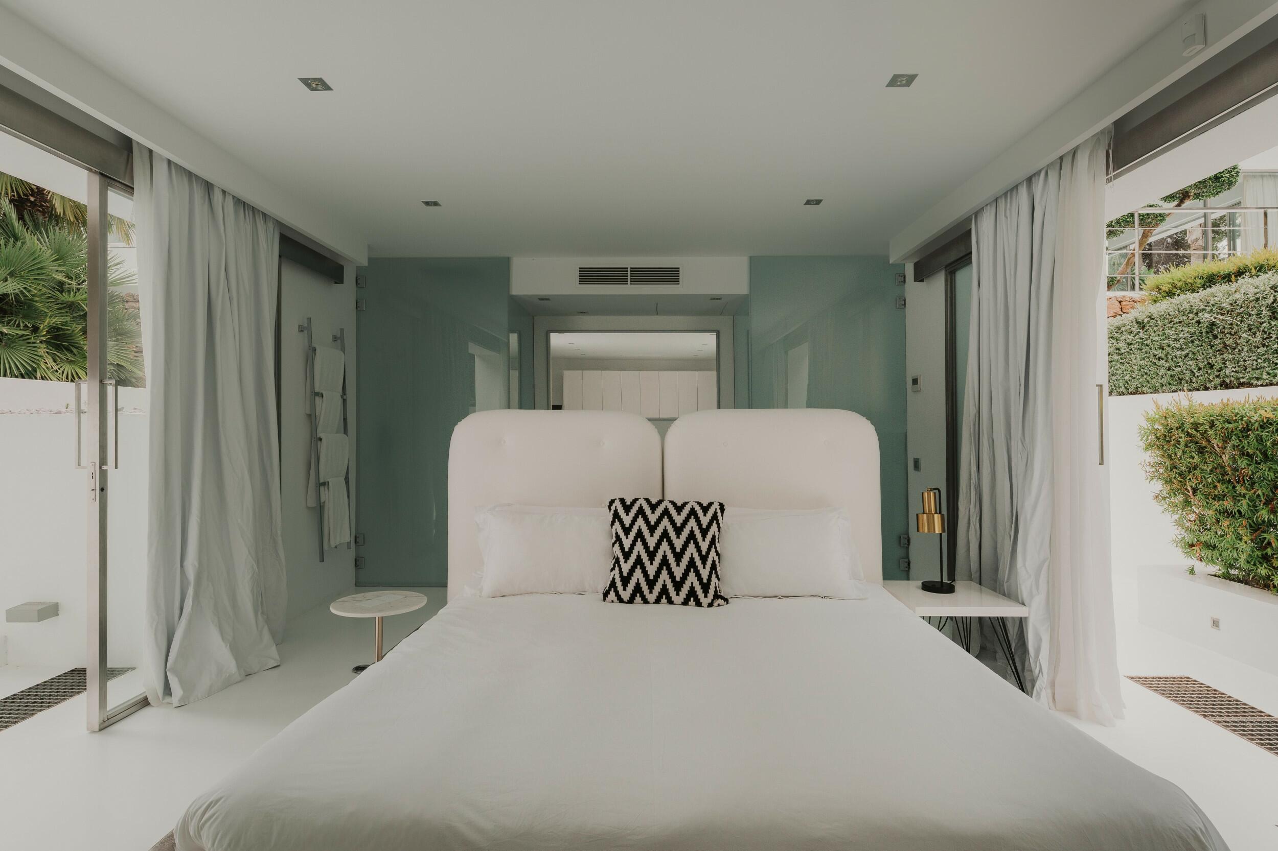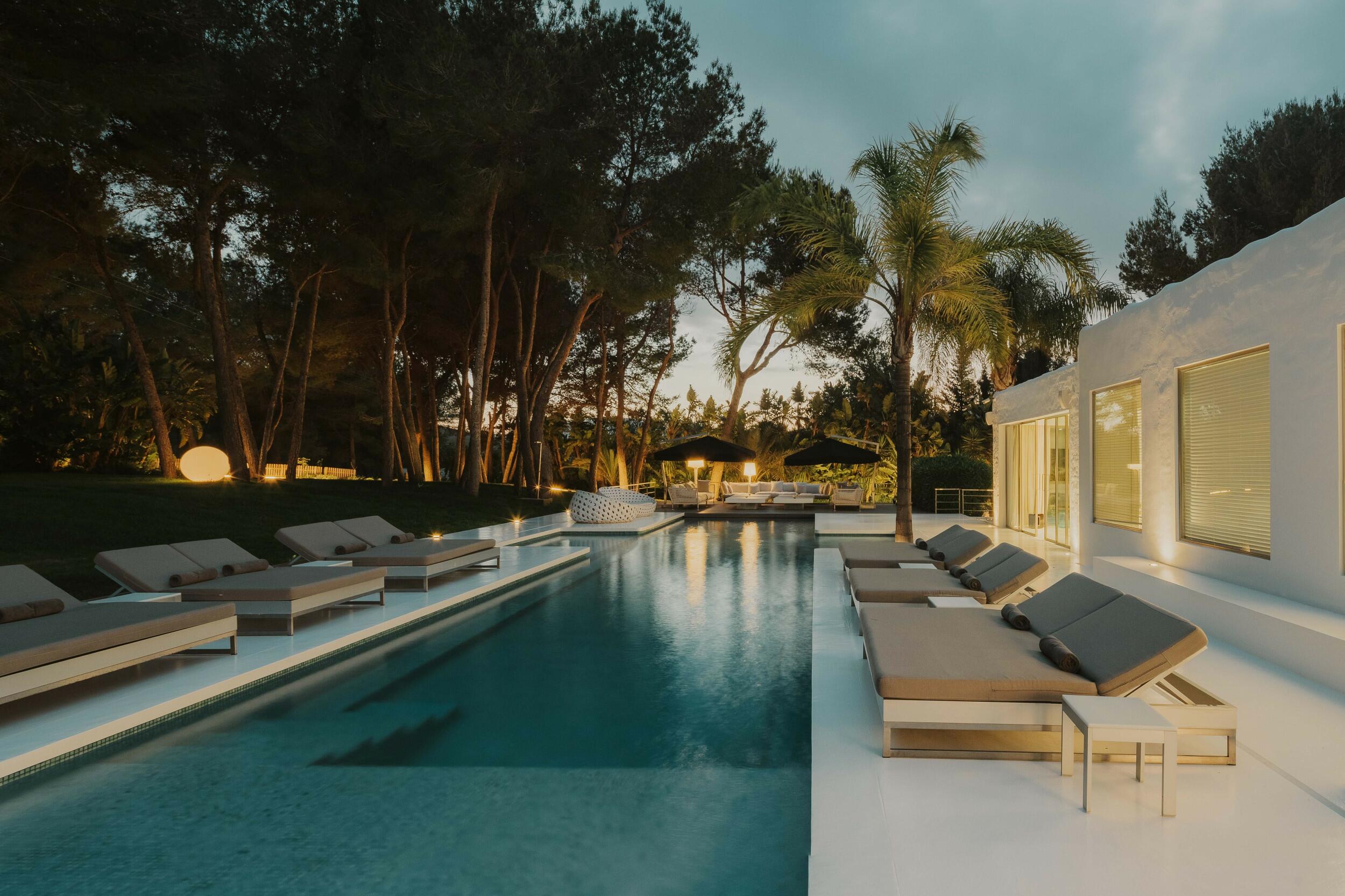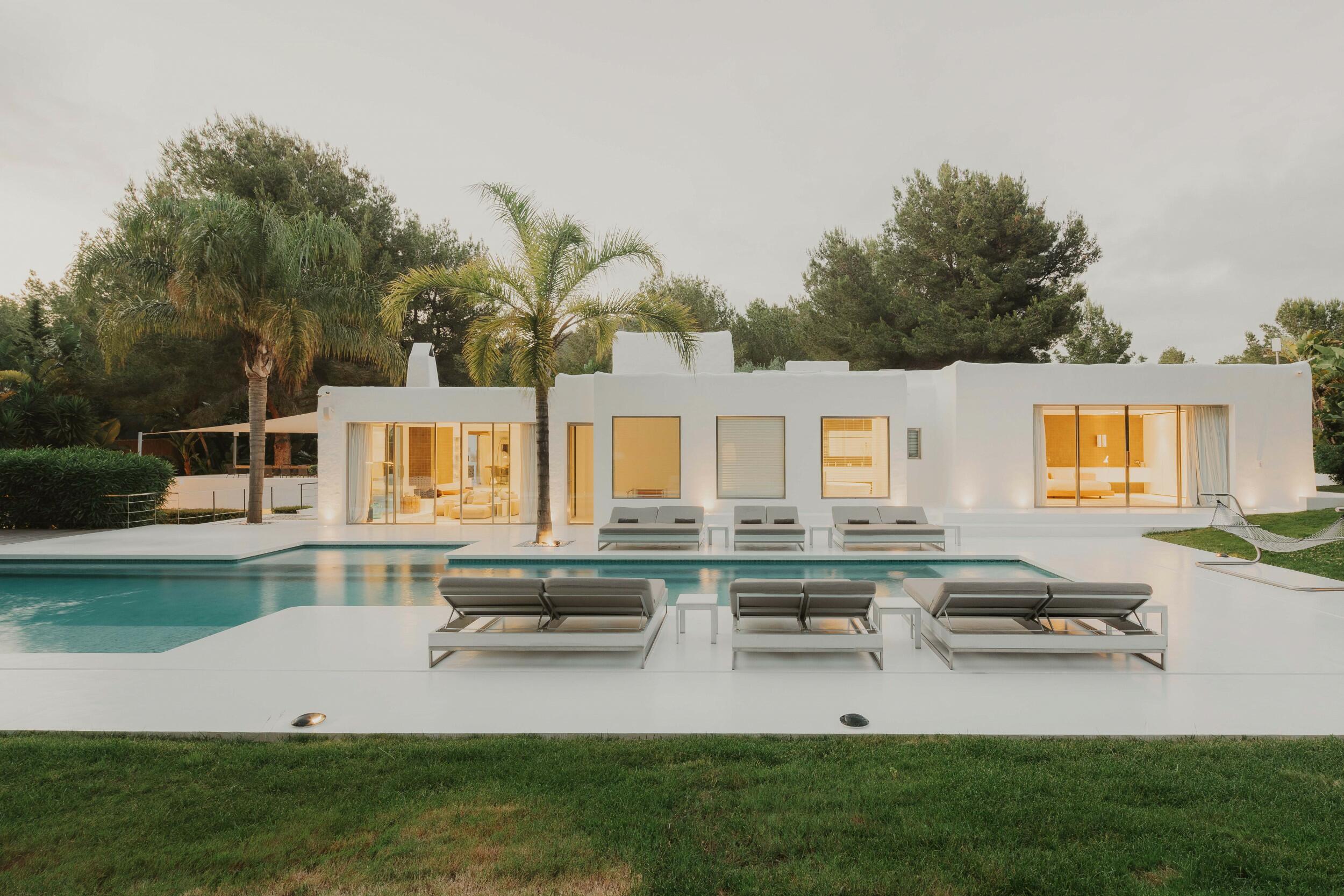 Immersa nell’esclusiva comunità privata del Parco Naturale di Es Cubells, Villa Celeste è un’oasi di eleganza moderna e serenità mediterranea.