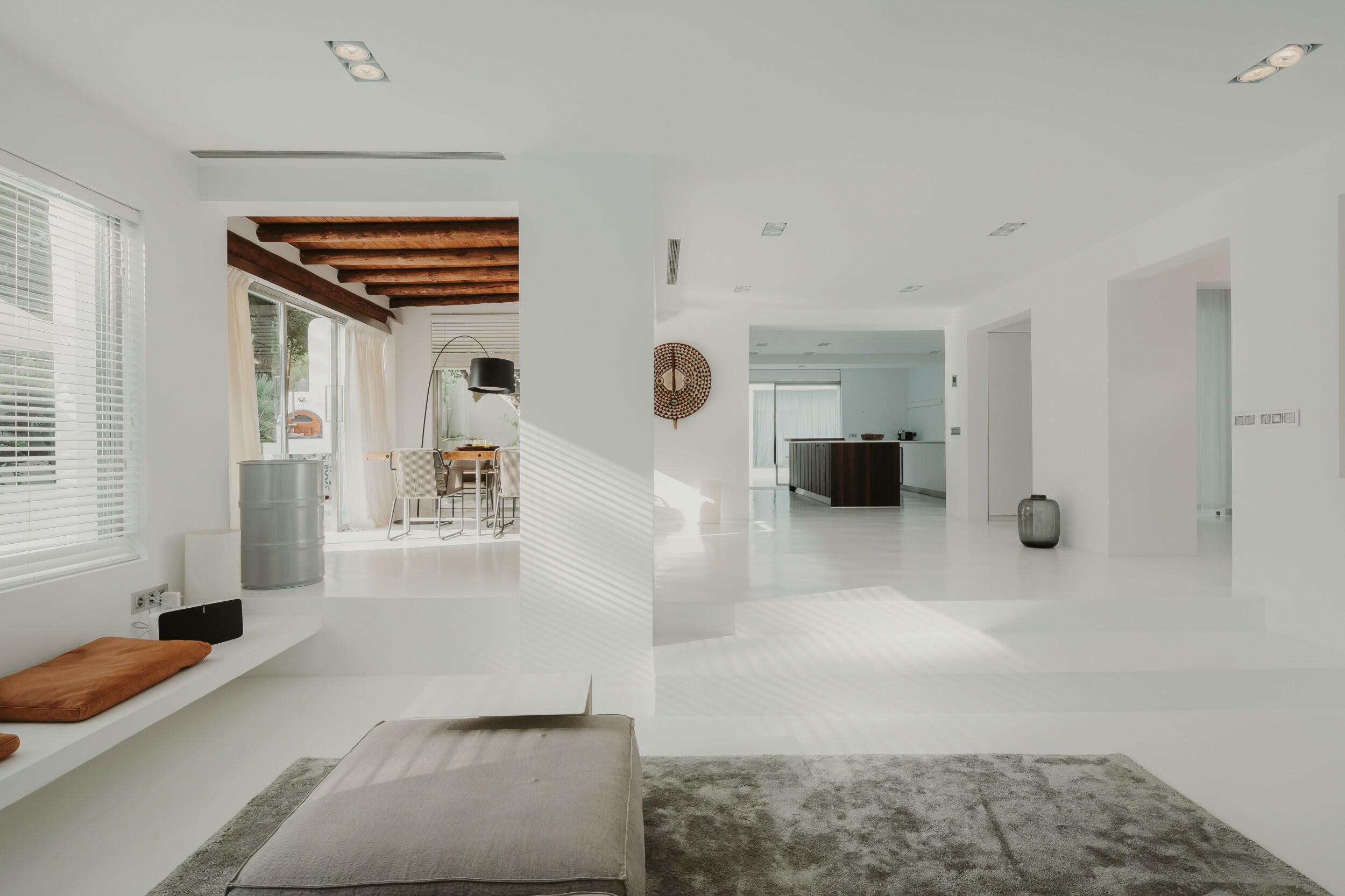 Villa Celeste è stata ristrutturata in uno stile contemporaneo raffinato, combinando un’architettura bianca con pavimenti in grandi lastre di ceramica nelle zone giorno e finiture in microcemento nelle camere da letto, per creare un’atmosfera calma e sofisticata.