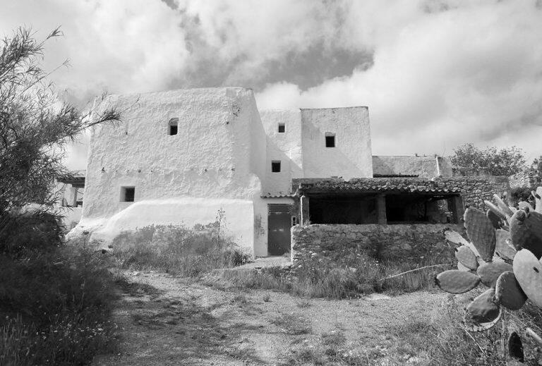Le finestre delle antiche case ibizenche erano molto piccole e non contenevano vetro. Non venivano utilizzate principalmente per la luce, ma per l’aria; la luce e il calore provenivano generalmente dalla porta d’ingresso esposta a sud. Qui si potevano vedere le contadine che sgusciavano le mandorle, ricamavano o filavano la lana. Le aziende agricole si differenziano da quelle delle altre isole Baleari, in quanto si tratta generalmente di piccole aziende agricole. Sebbene fossero autosufficienti, le famiglie su di esse facevano affidamento sull’aiuto dei vicini per la raccolta delle olive o per il giorno della matanza.