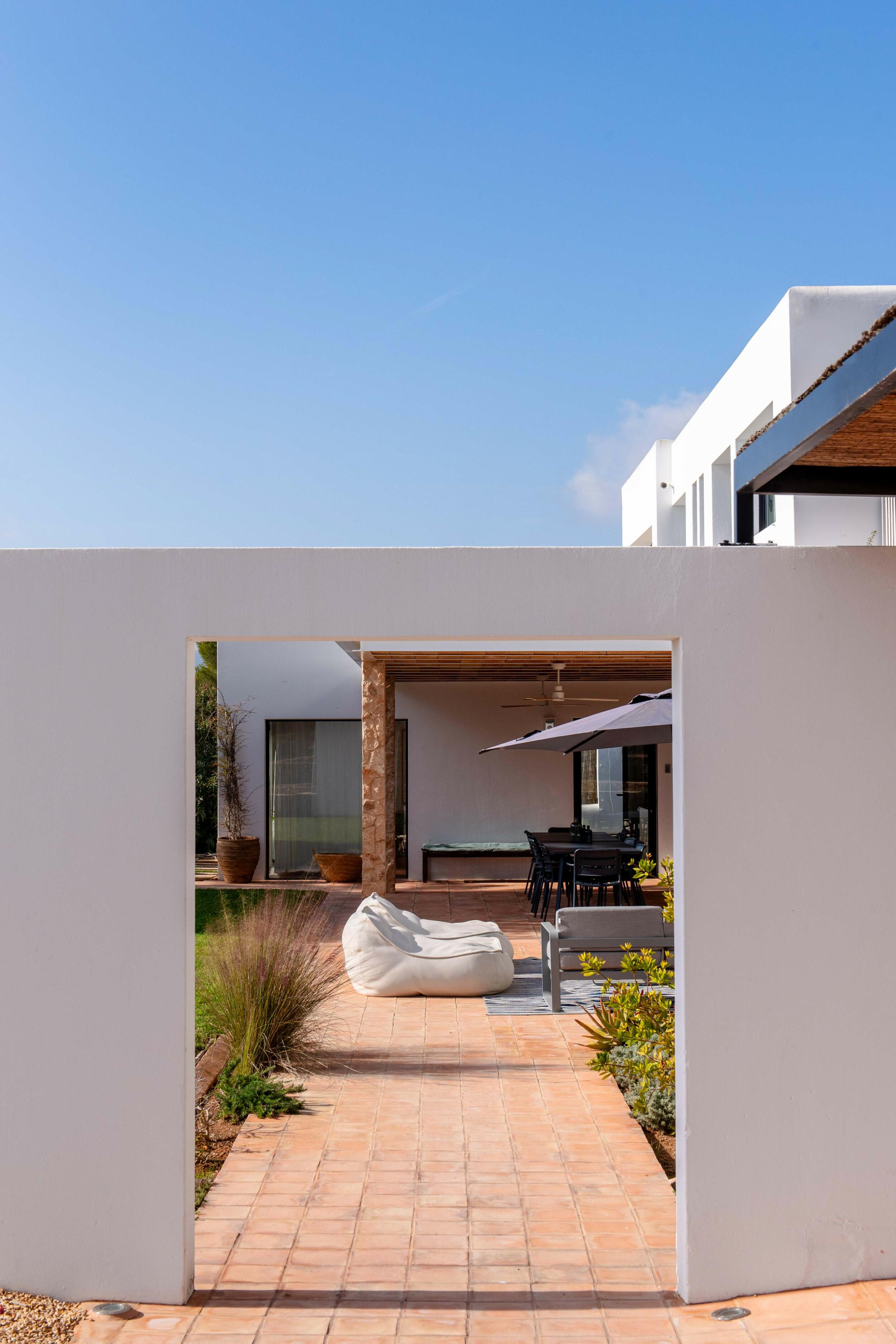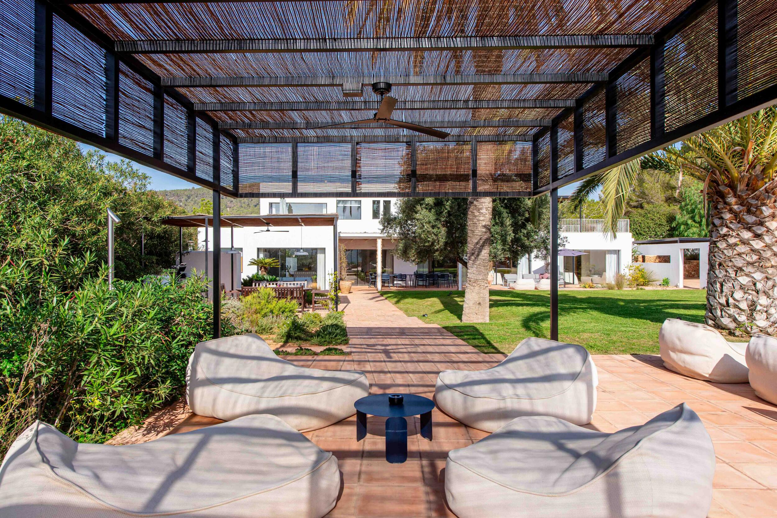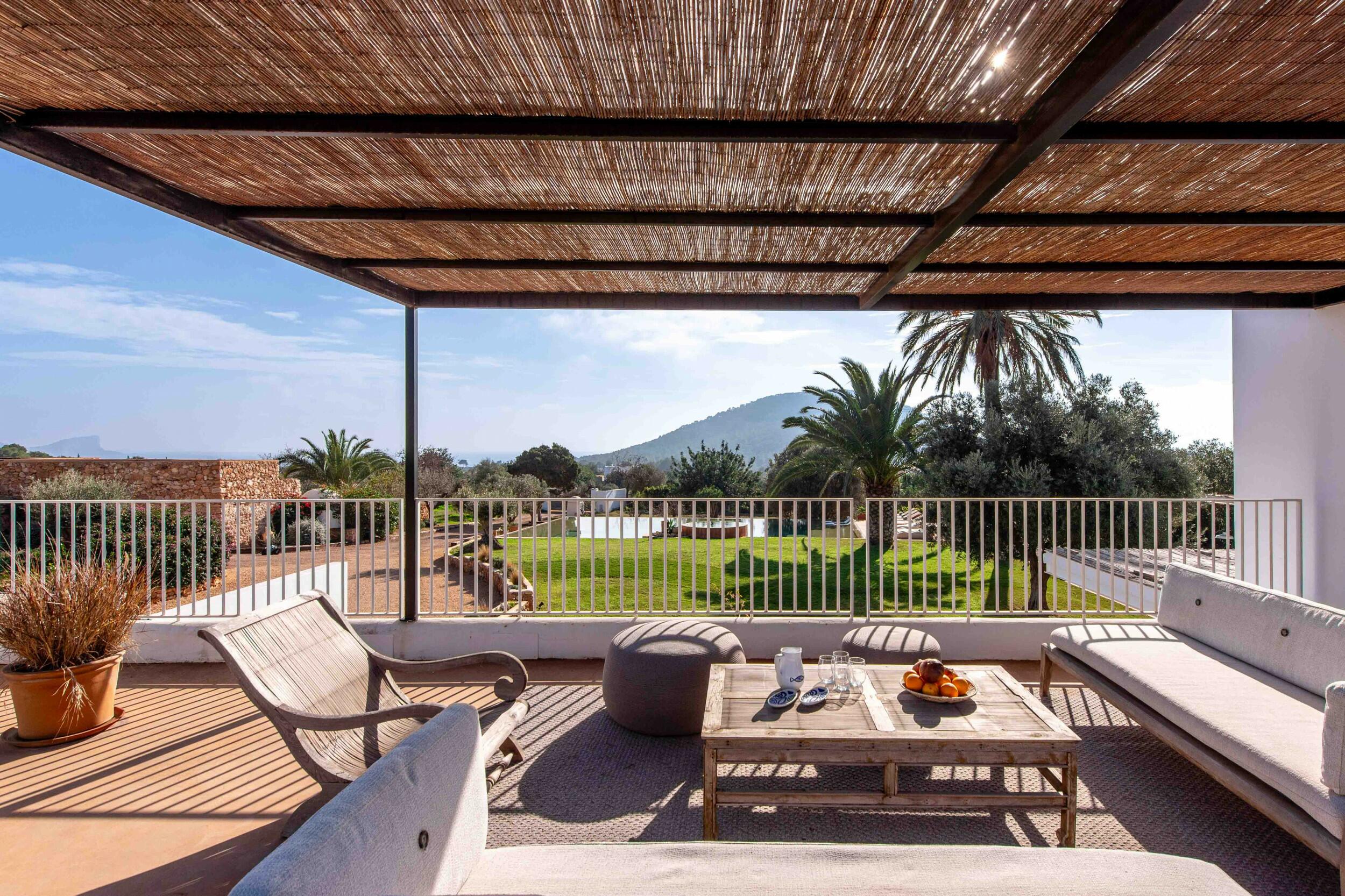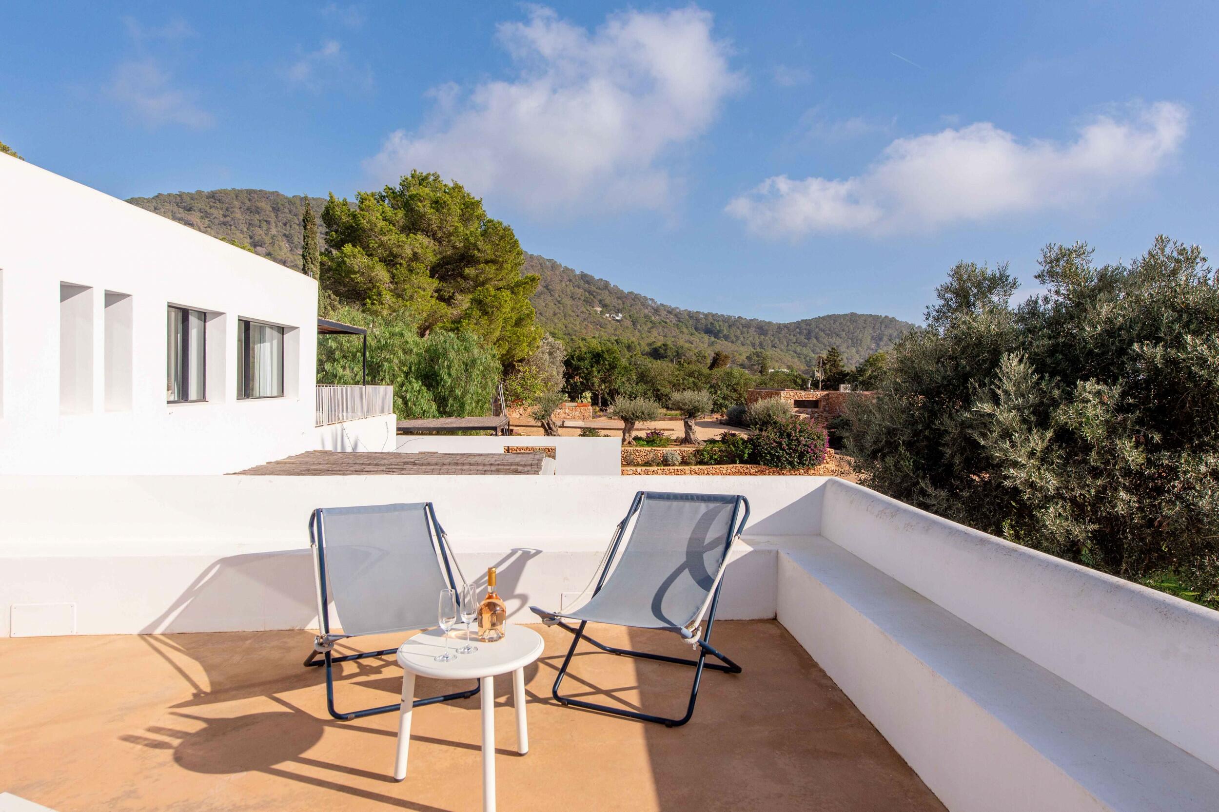 Molteplici terrazze offrono aree lounge ombreggiate e uno spazio per pranzi all’aperto, ideale per colazioni tranquille, pranzi rilassati o cene a lume di candela sotto il cielo di Ibiza.