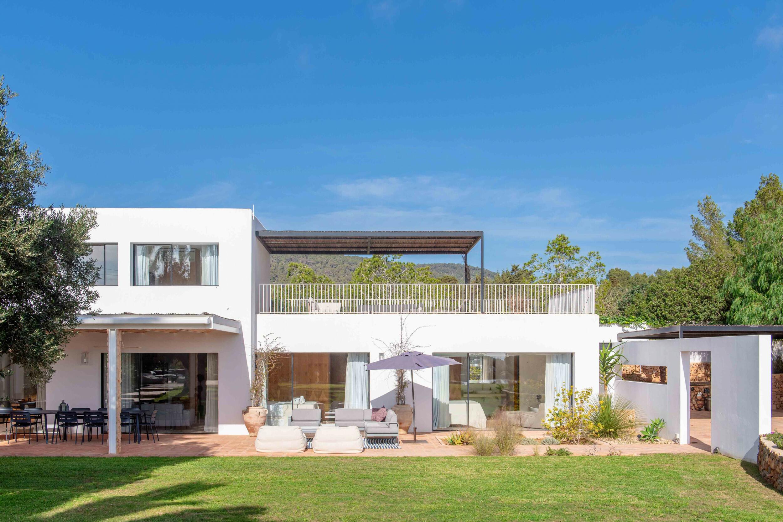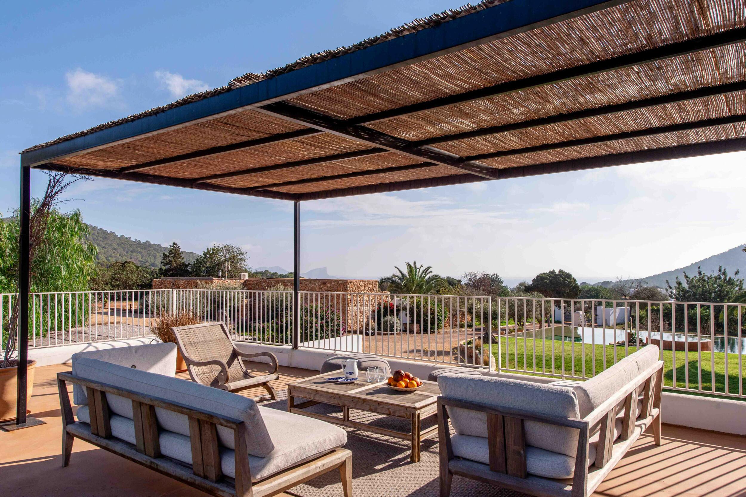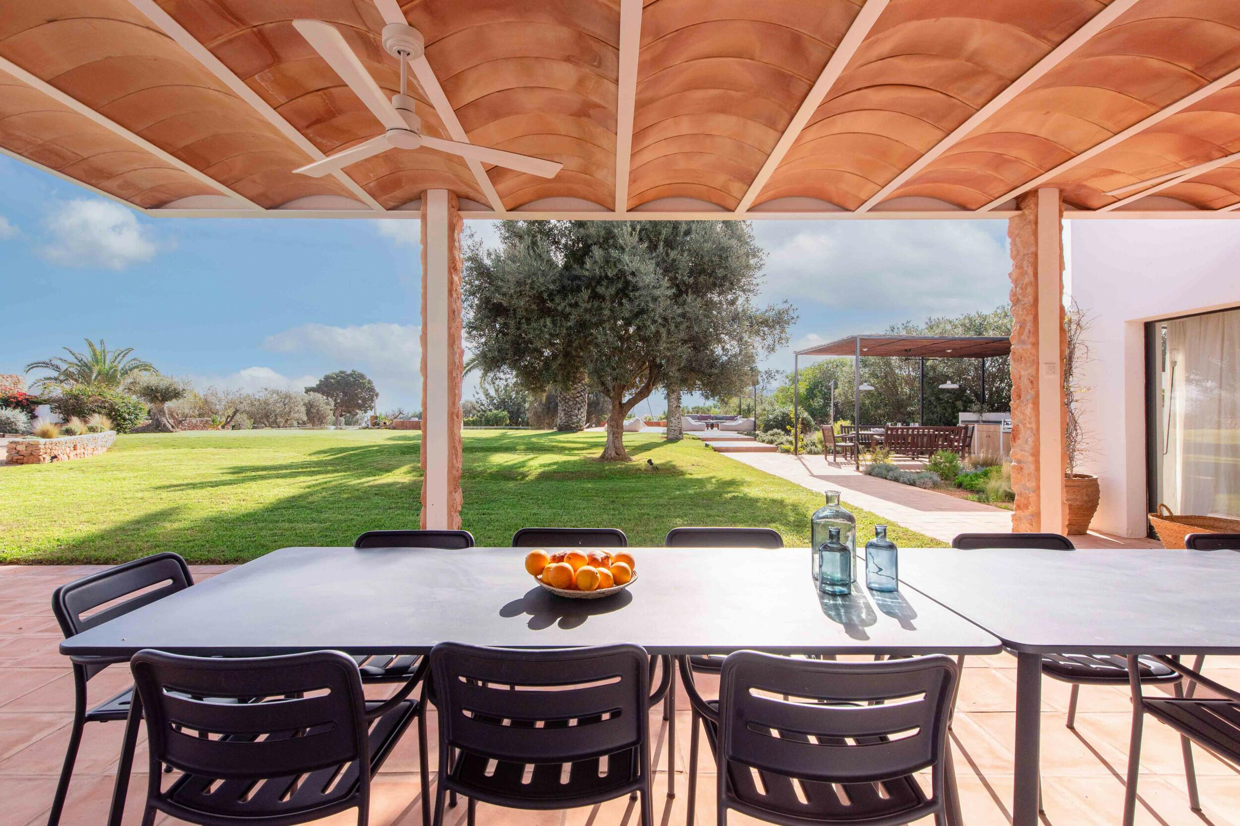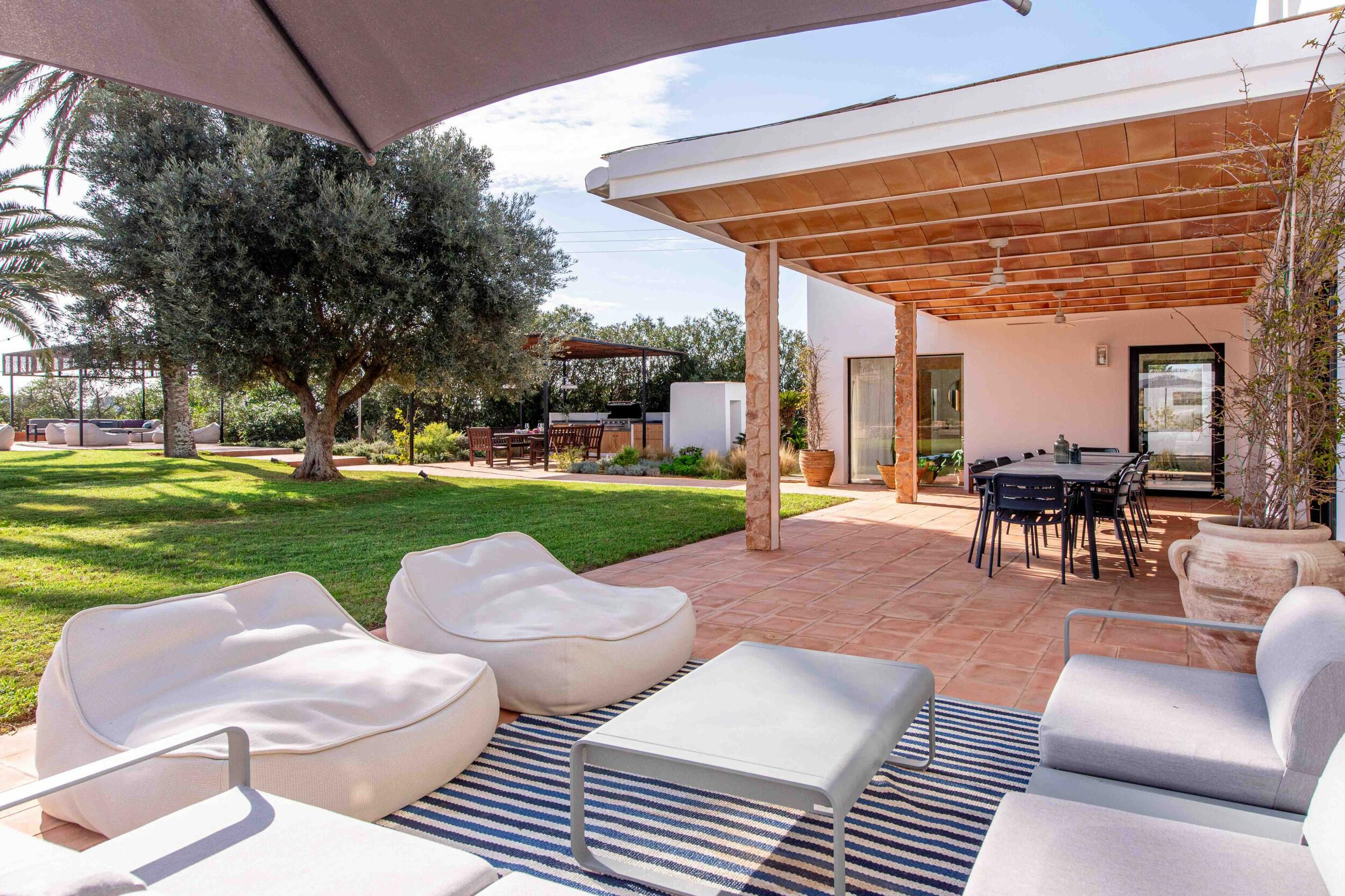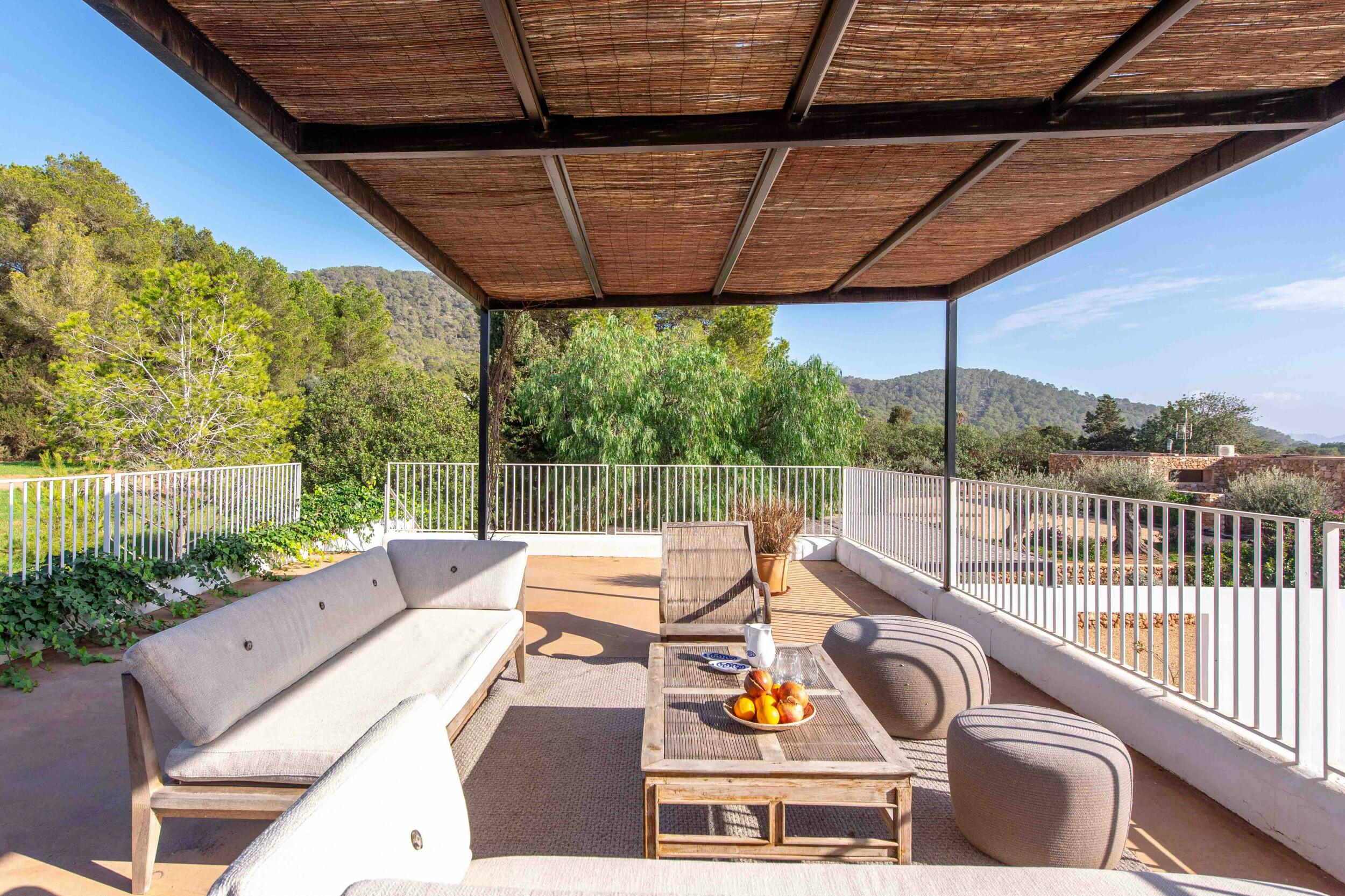 Molteplici terrazze offrono aree lounge ombreggiate e uno spazio per pranzi all’aperto, ideale per colazioni tranquille, pranzi rilassati o cene a lume di candela sotto il cielo di Ibiza.