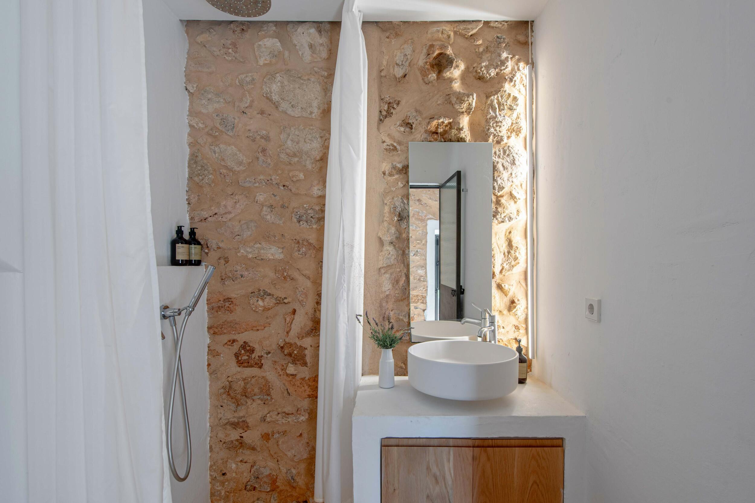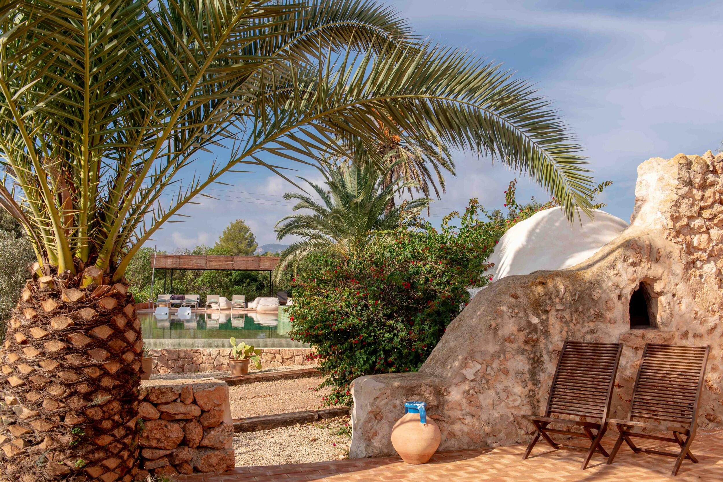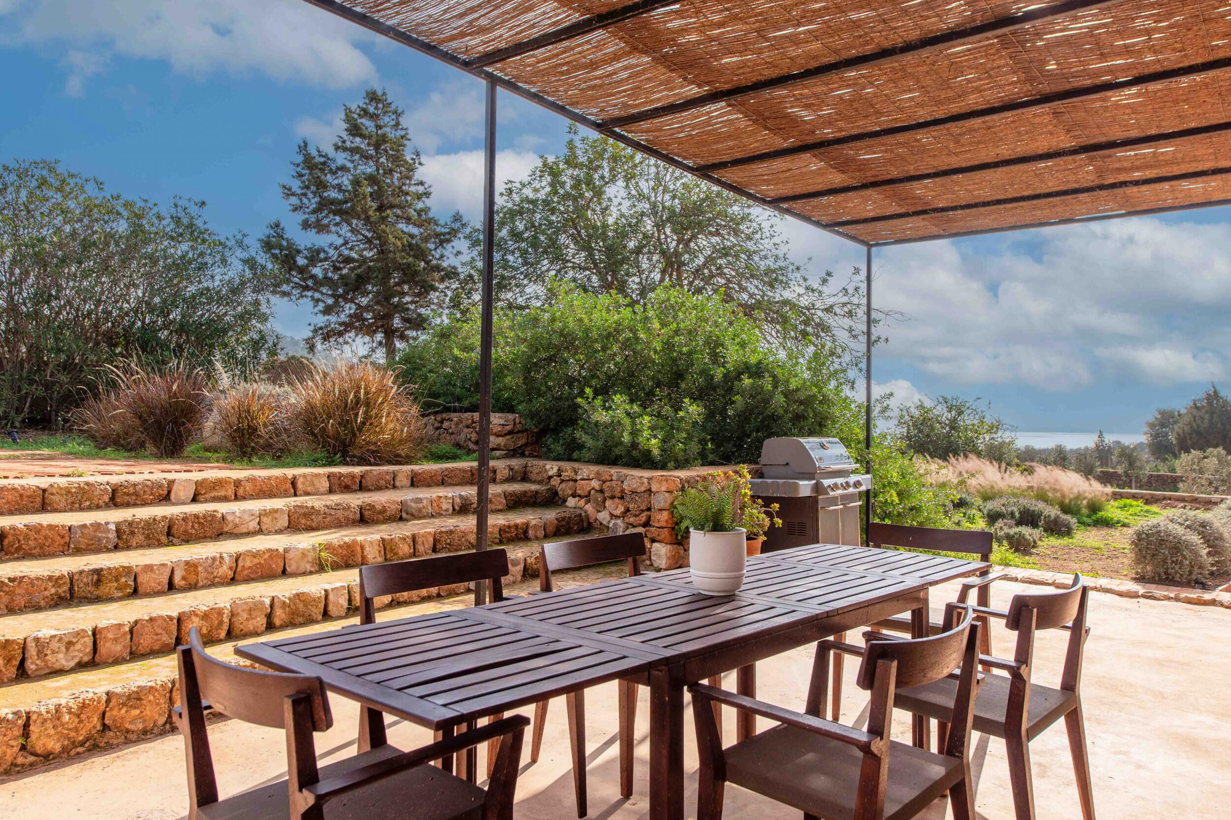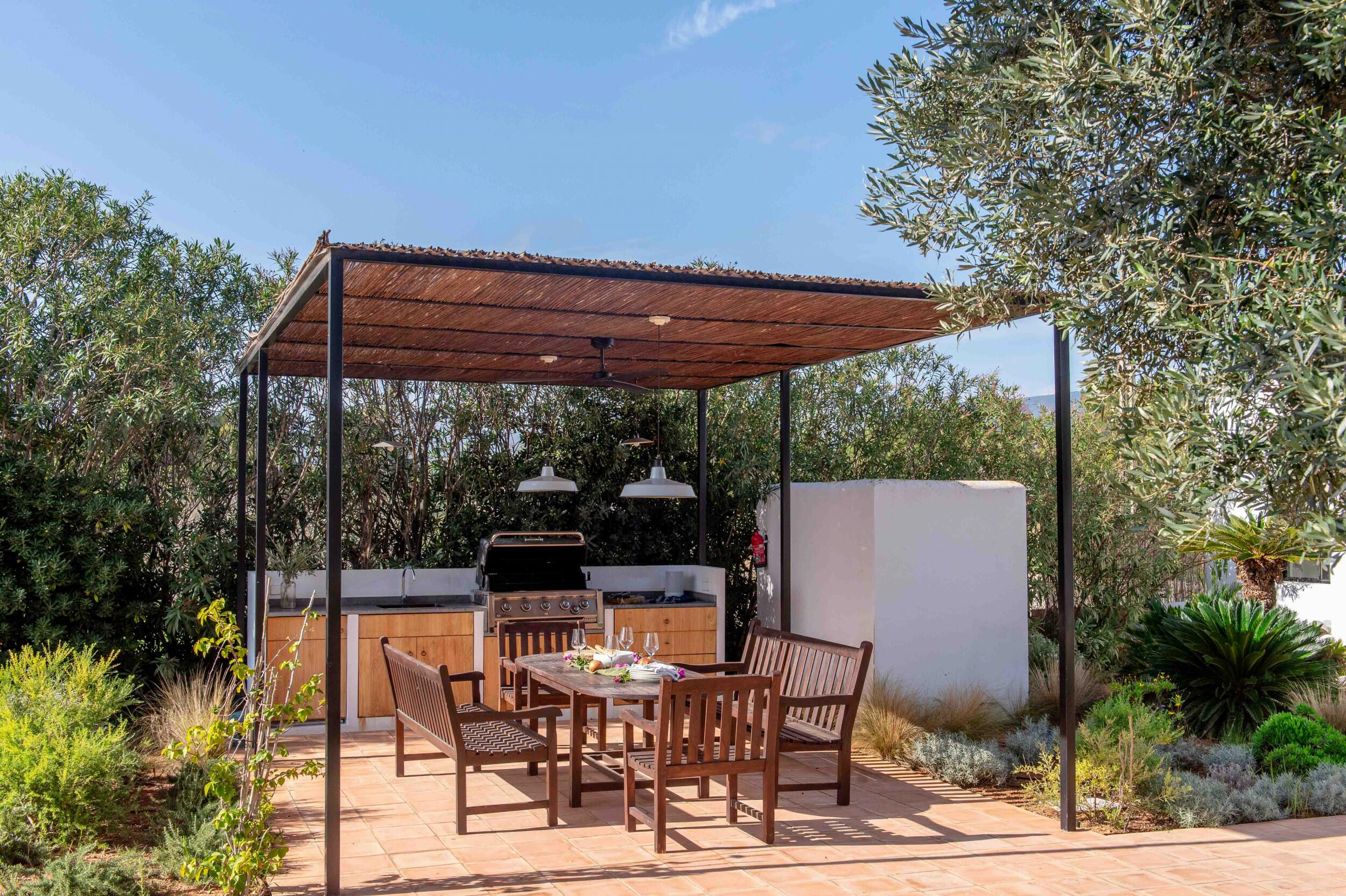 Molteplici terrazze offrono aree lounge ombreggiate e uno spazio per pranzi all’aperto, ideale per colazioni tranquille, pranzi rilassati o cene a lume di candela sotto il cielo di Ibiza.