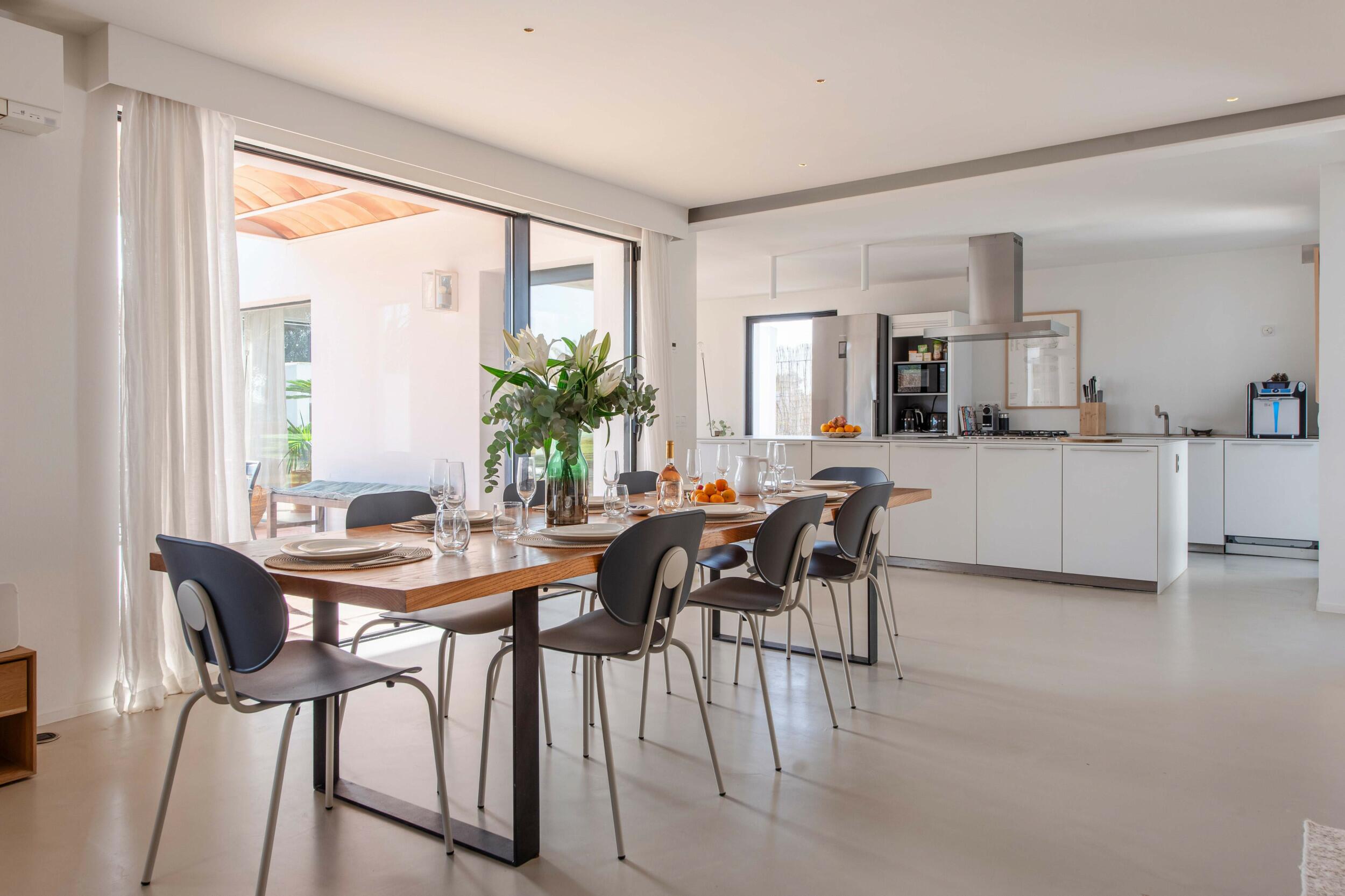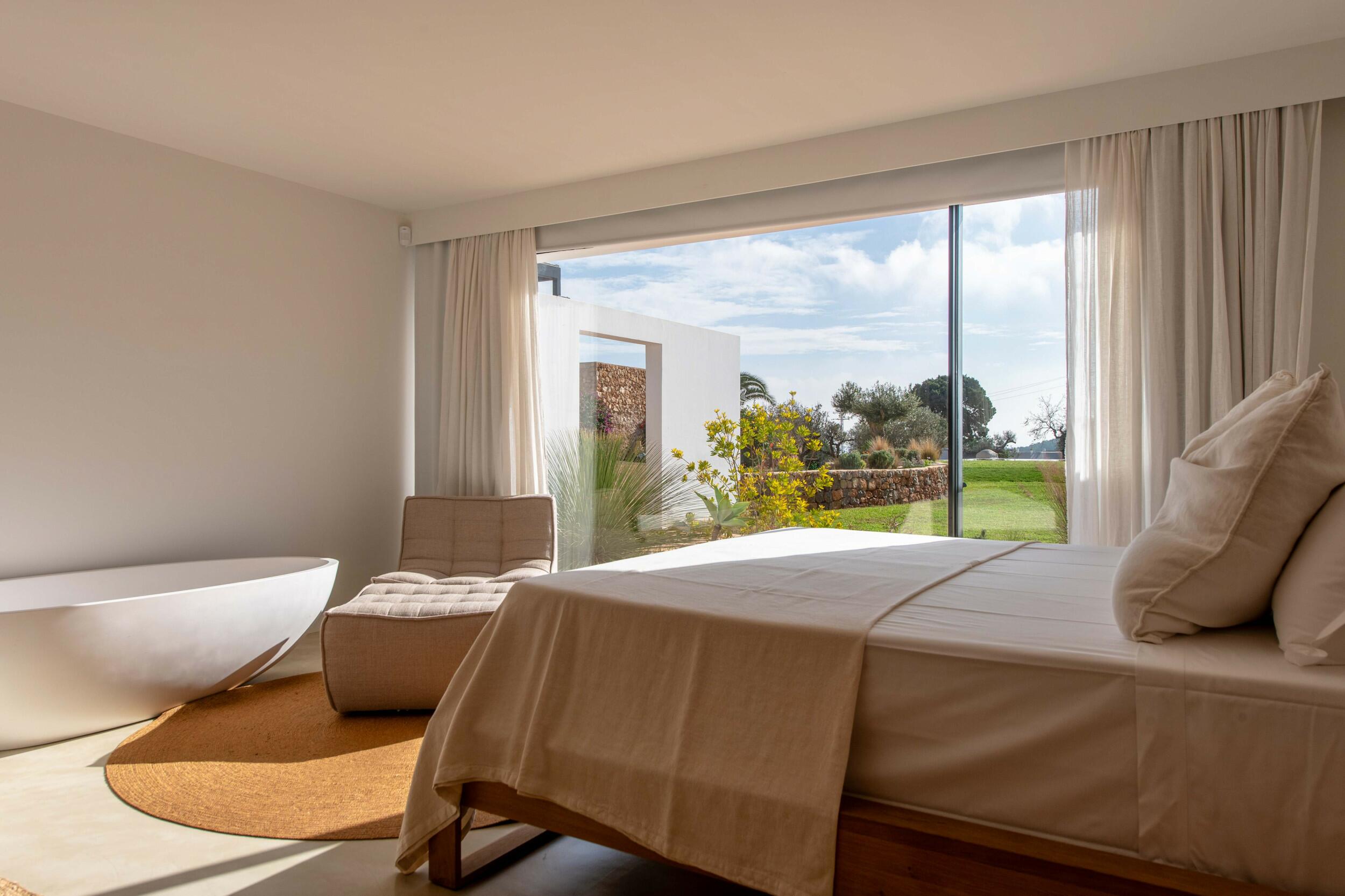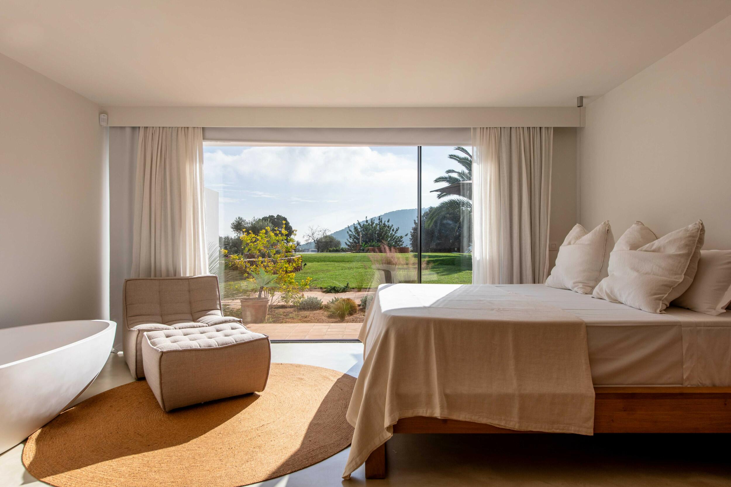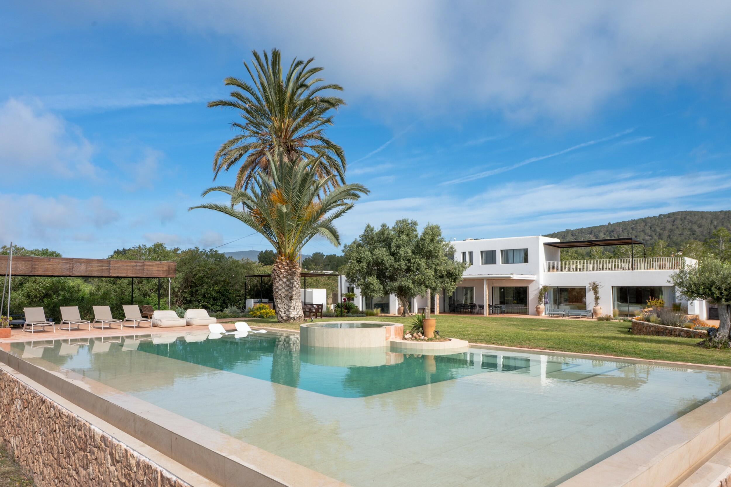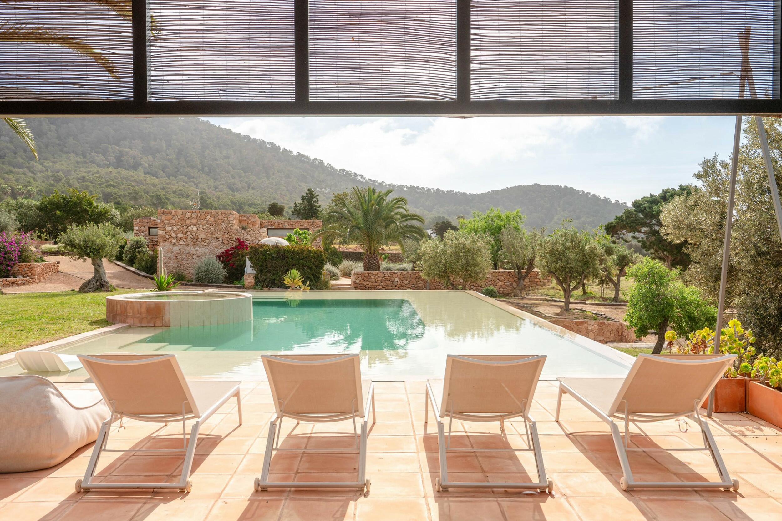 Perfetta per famiglie o gruppi di amici, la villa combina privacy e vicinanza — trascorri mattine nuotando in cale turchesi, pomeriggi rilassandoti a bordo piscina, e serate cenando sotto le stelle prima di dirigerti verso il Dalt Vila storico di Ibiza Town o la scena del porto turistico.