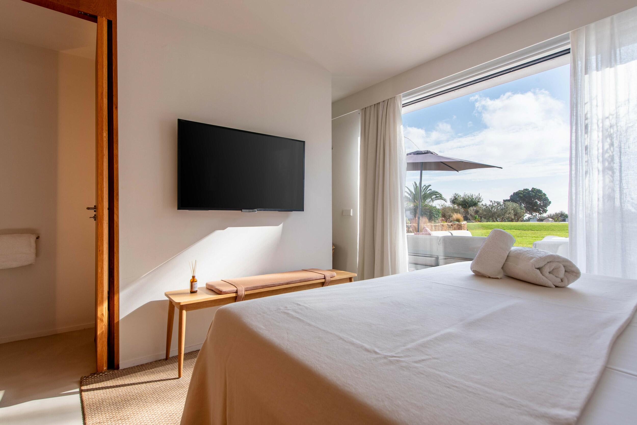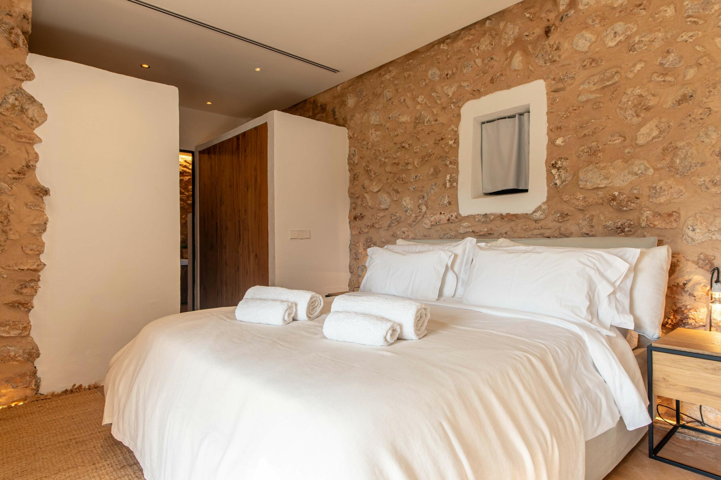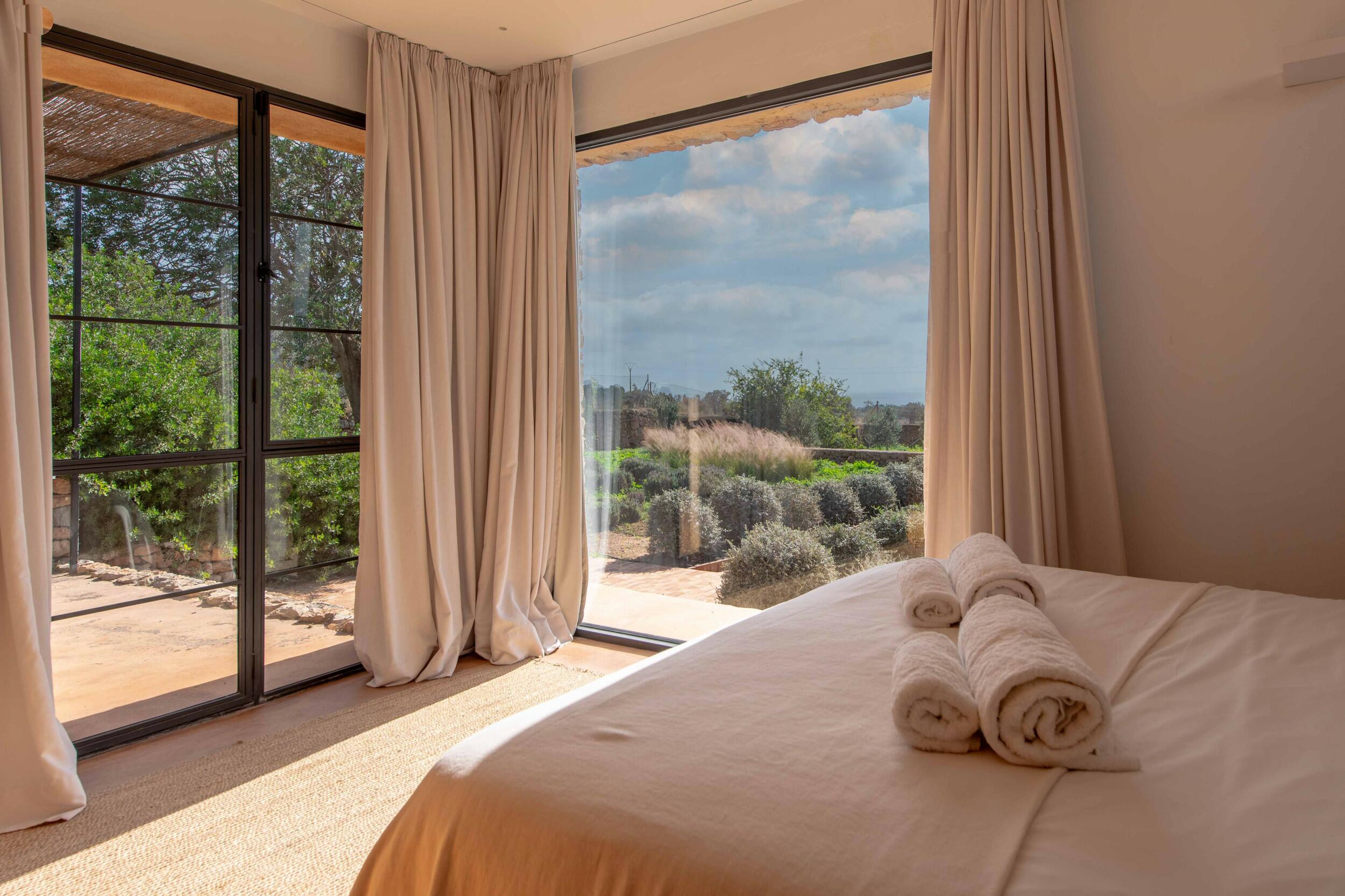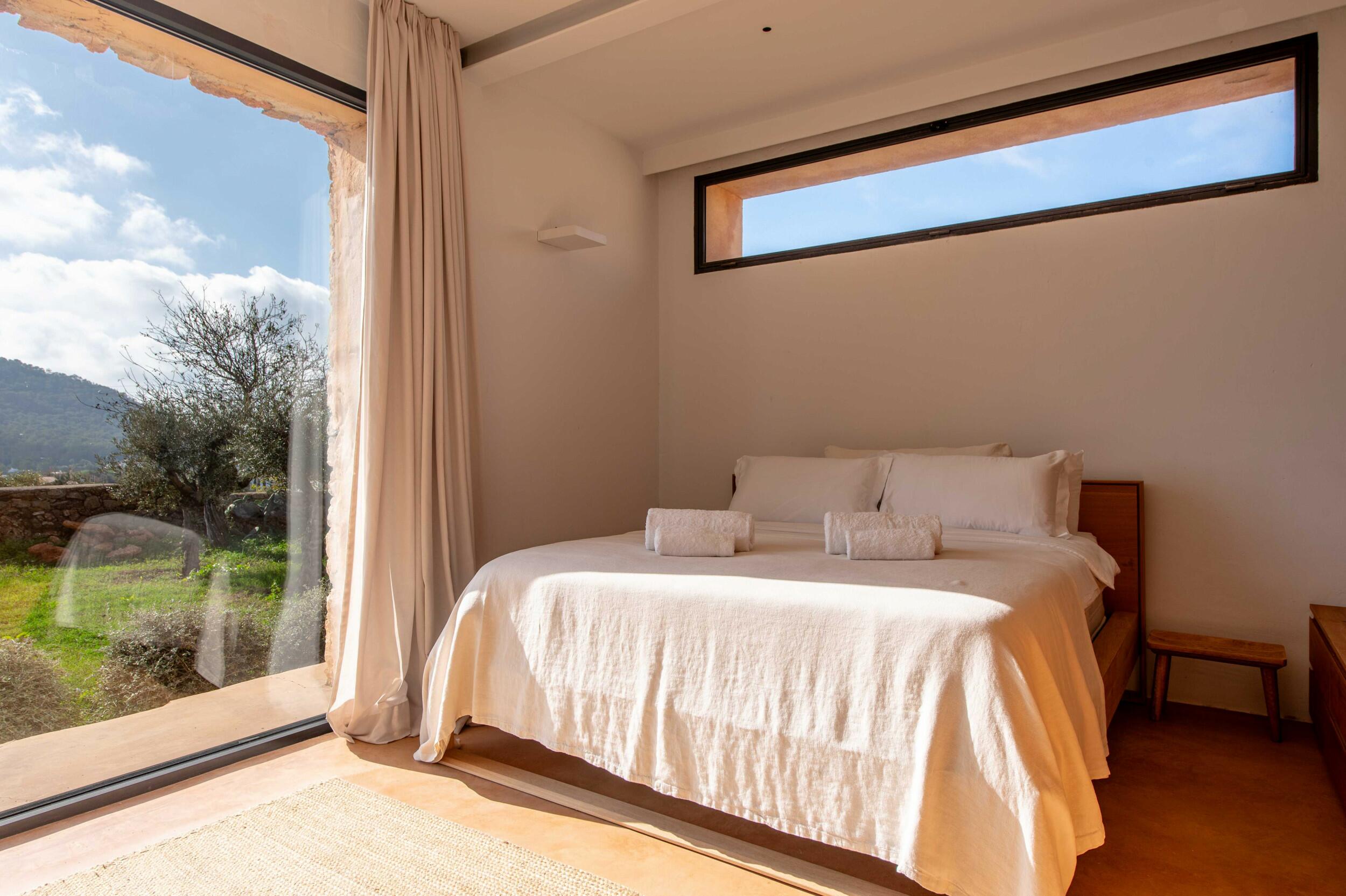 Attrazioni vicine includono Cala d’Hort, famosa per le sue viste magnetiche su Es Vedrà al tramonto; il Dalt Vila, sito UNESCO, un labirinto di fascino storico e terrazze panoramiche; e l’atmosfera vivace del porto turistico vicino a Ibiza Town.