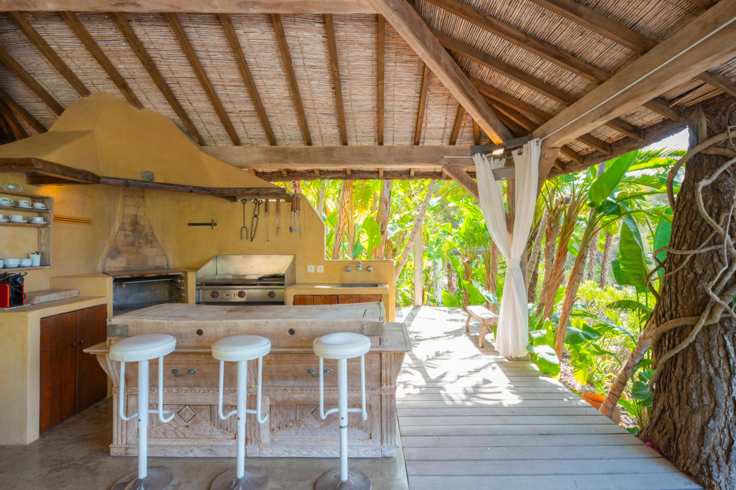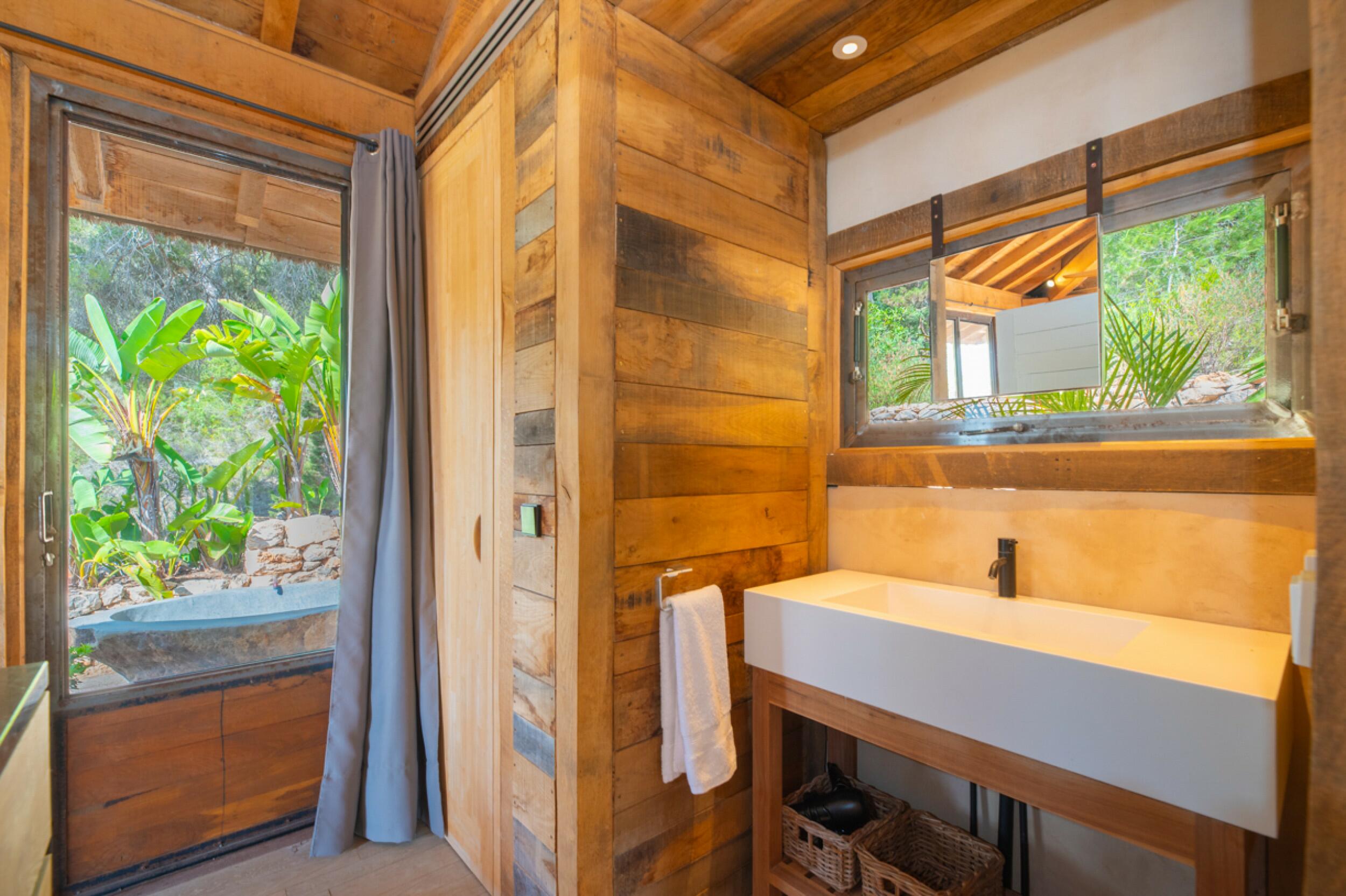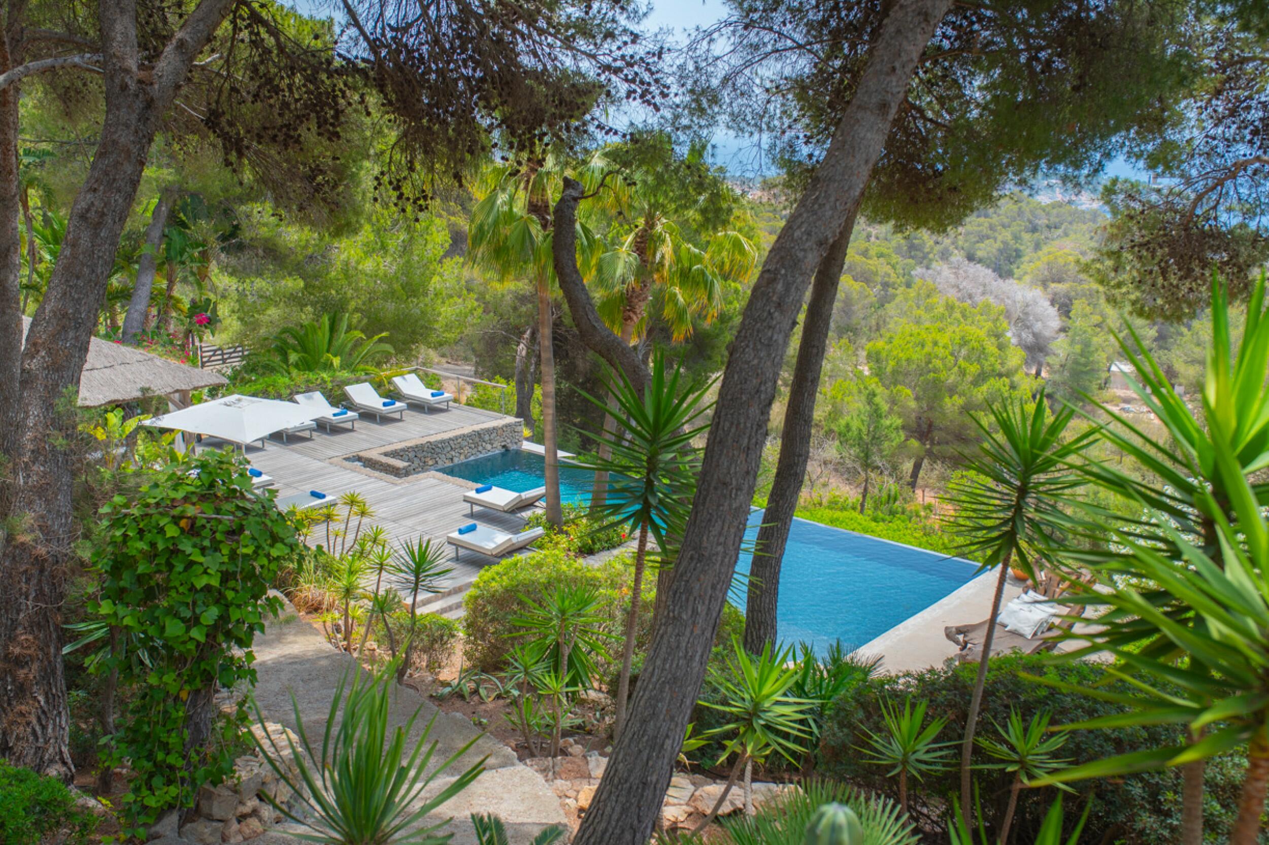 Villa di lusso in stile tropicale con jacuzzi e vista sul mare a Es Cubells