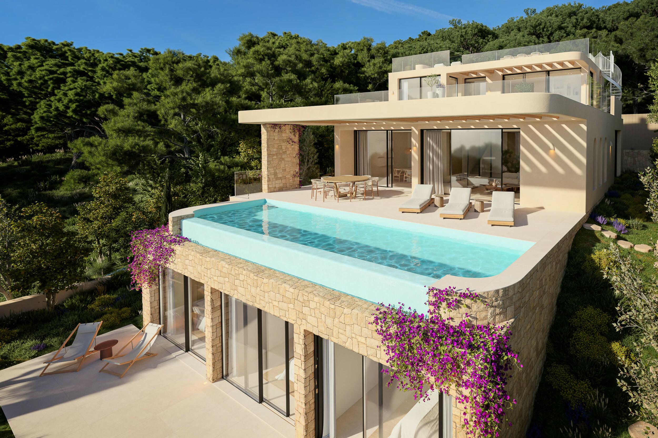 Moderna villa con sette camere da letto, piscina e fantastica vista sul mare